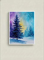 Technique: Watercolor Wash, Color Gradient, Delicate Snowflake Depiction, Light Effects
